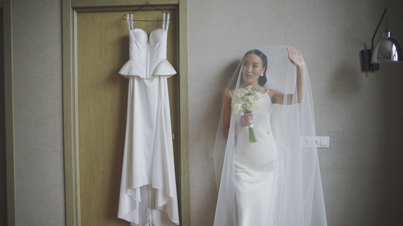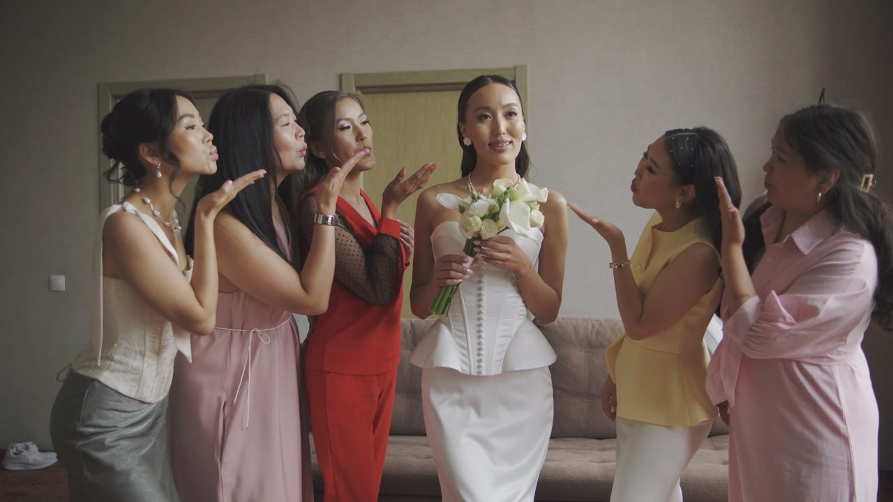 Финальные кадры в образе и первая встреча жениха и невесты, первый взгляд родителей, общее фото с друзьями, подругами, родственниками и выход из дома/студии/отеля.