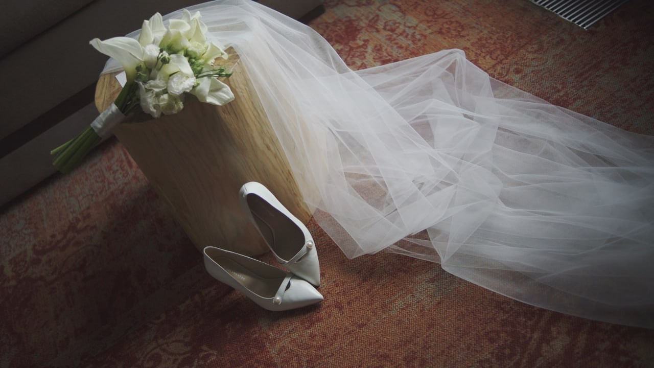 Первые 30 мин. съёмка деталей: Свадебное платье, обручальные кольца, обувь, приглашение на Свадьбу, парфюм, украшения.
